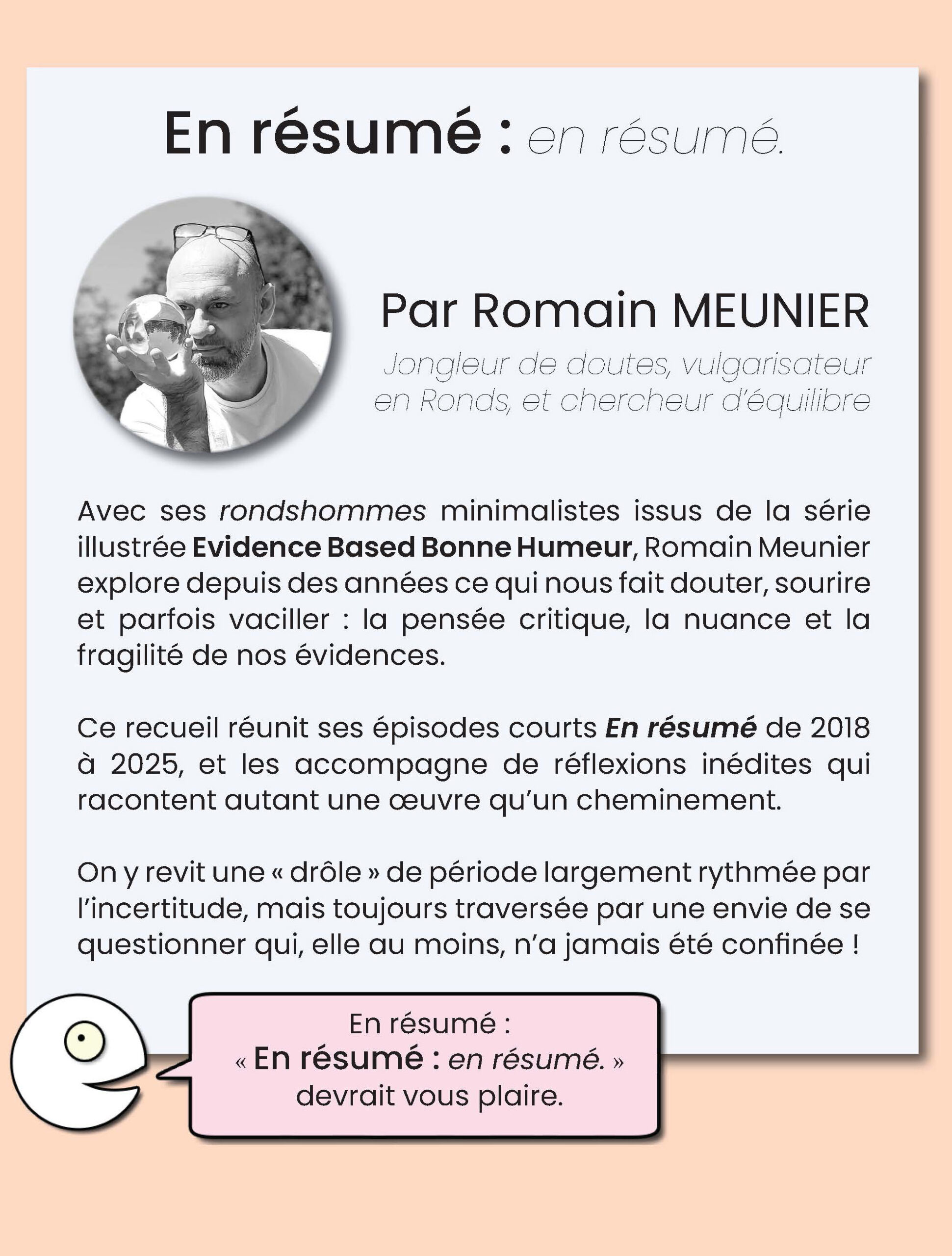 Alors, « En résumé : en résumé. », ben, en résumé, c’est un recueil de tous les épisodes En résumé publiés de 2018 à 2025… commentés, en fonction de ce qu’ils m’inspirent rétrospectivement.