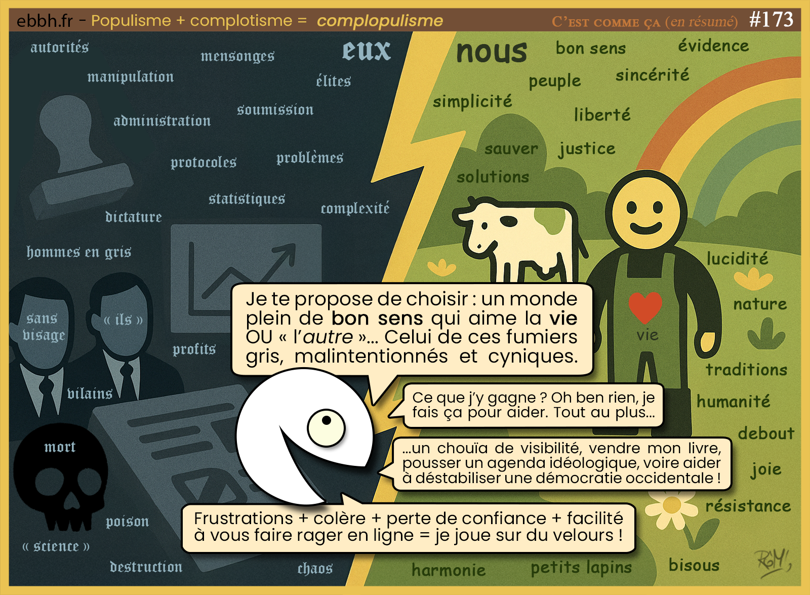 Crise sanitaire bovine, colère, peur : terrain idéal pour le complopulisme (populisme + complotisme).