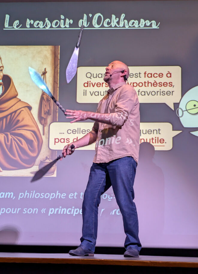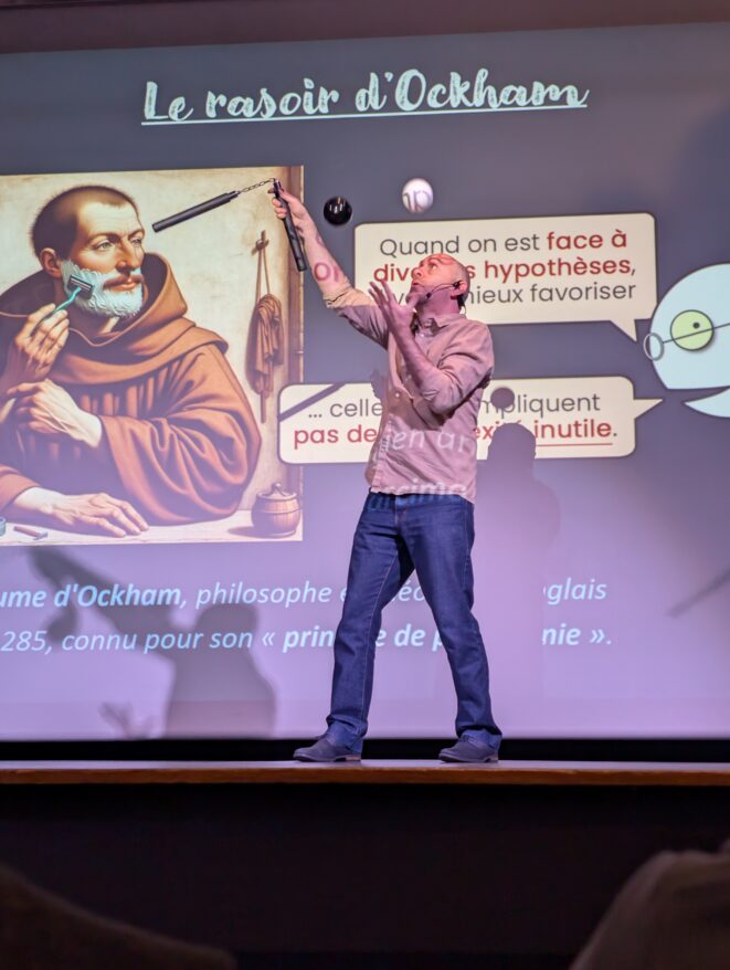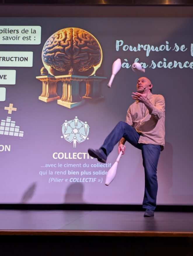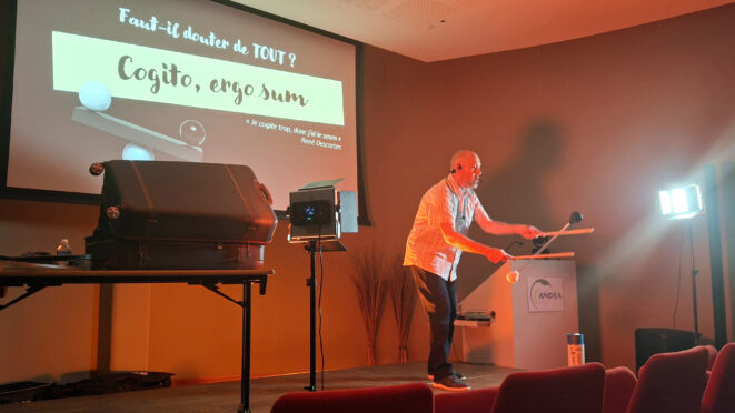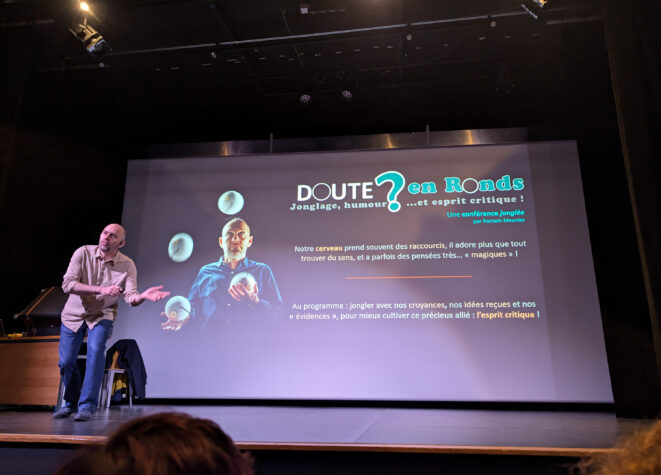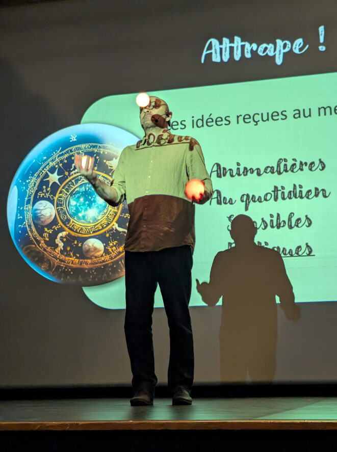 - le samedi 11 octobre 2025 à 18h-19h30, au Lycée Sainte Marie de Lyon (avec l’Afis Lyon, https://www.fetedelascience.fr/conference-jonglee-doute-en-ronds )