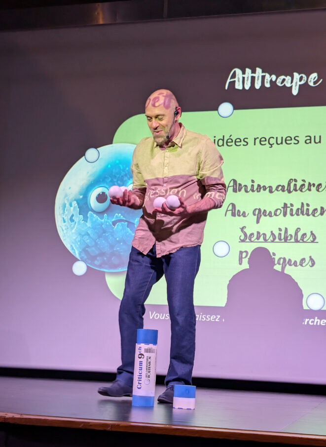 - les 3 & 4 octobre à Reims (avec Accustica, au Moulin de la Housse de l’URCA) https://www.fetedelascience.fr/doute-en-ronds-jongler-avec-la-science-et-l-esprit-critique)