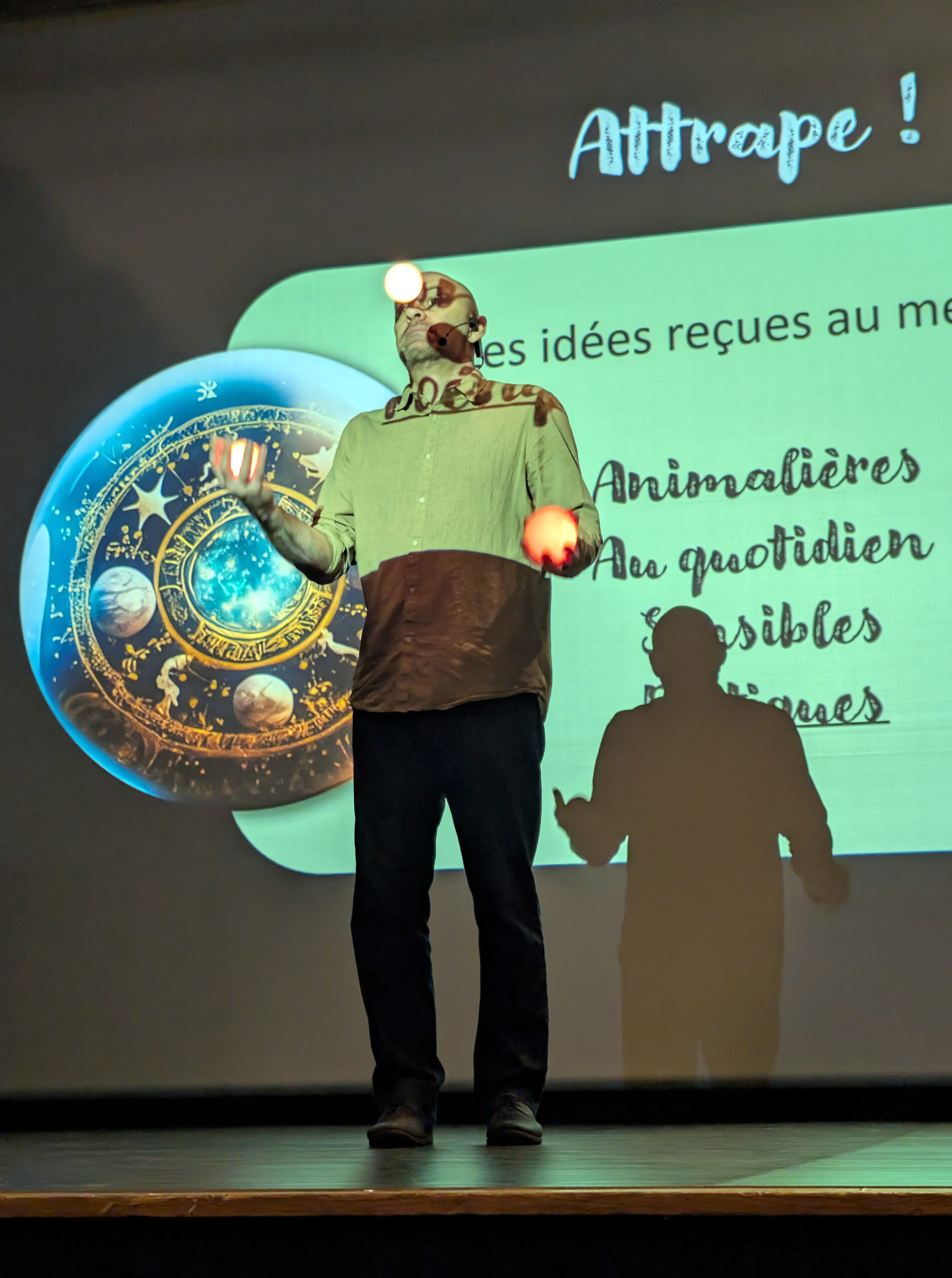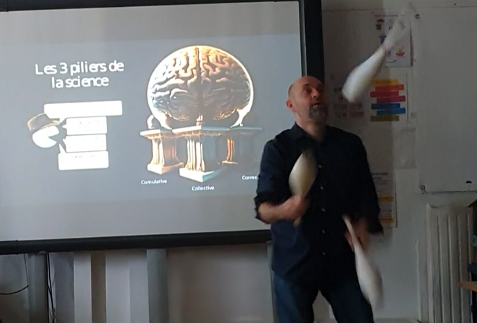 - le samedi 11 octobre 2025 à 18h-19h30, au Lycée Sainte Marie de Lyon (avec l’Afis Lyon, https://www.fetedelascience.fr/conference-jonglee-doute-en-ronds )