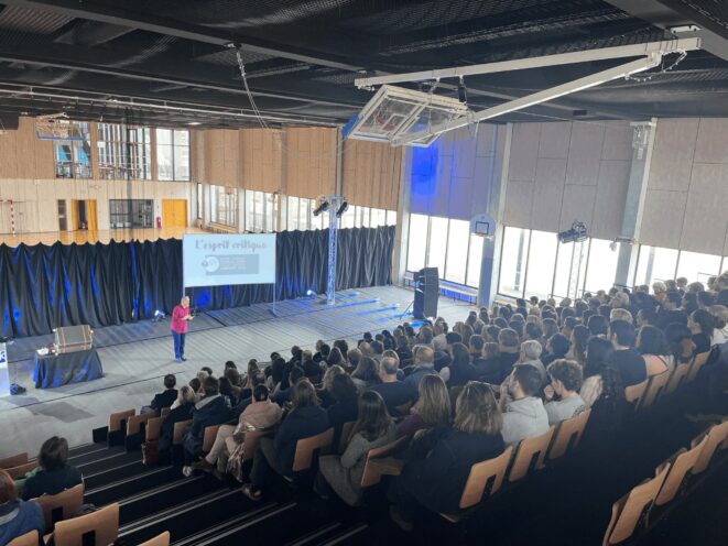 Après quelques ateliers détente, ma conférence spectacle de 10h30 à 12h30, repas, puis conférence sur l’esprit critique de Carine Ossard. Les enseignants ont ensuite été répartis en autant de groupes qu’il y a de matières et ont chacun passé une heure à échanger et travailler sur les biais cognitifs et blocages que pouvaient rencontrer leurs élèves et eux-mêmes dans certaines situations type. Chaque groupe a fait ensuite une restitution synthétique de leur discussion.